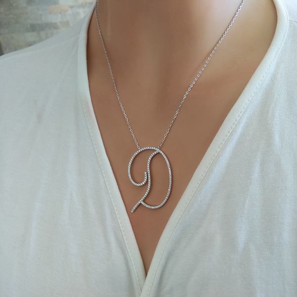 אותיות שרשרת מכסף אמיתי 925 בציפוי רודיום