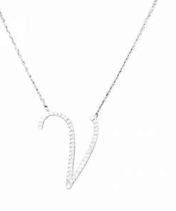 אות ושרשרת מכסף 925 בשיבוץ זרקונים מנצנצים