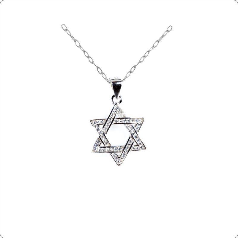 תליון שרשרת מגן דוד, משובץ באבני זירקון,